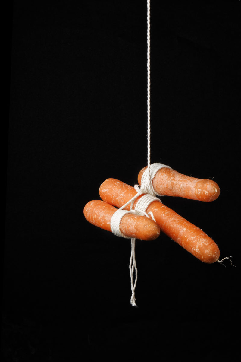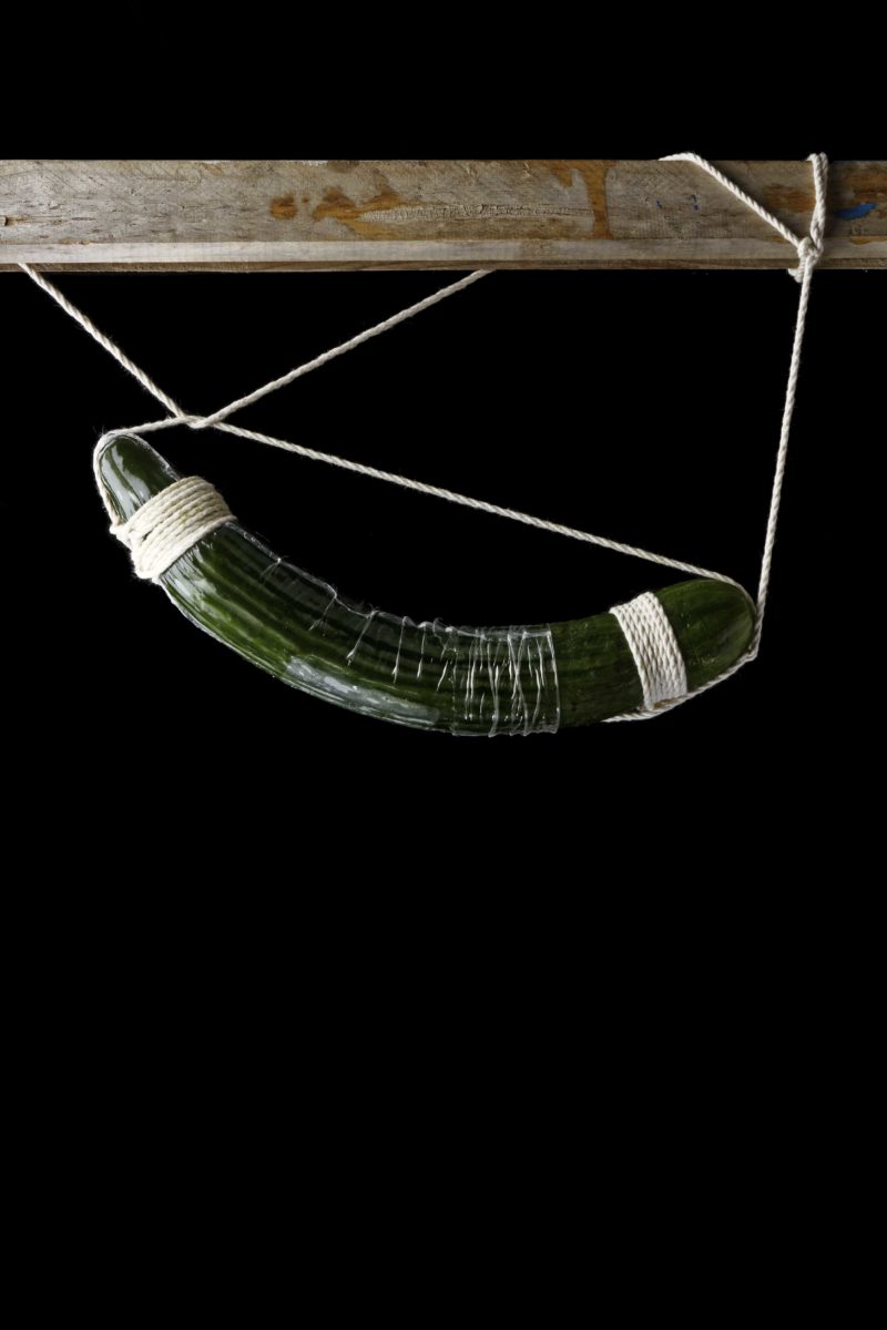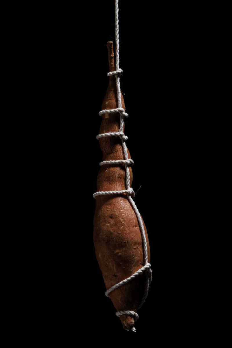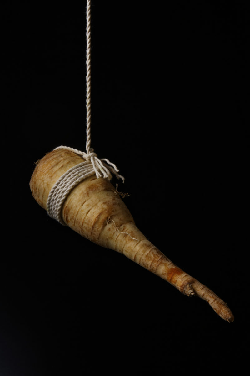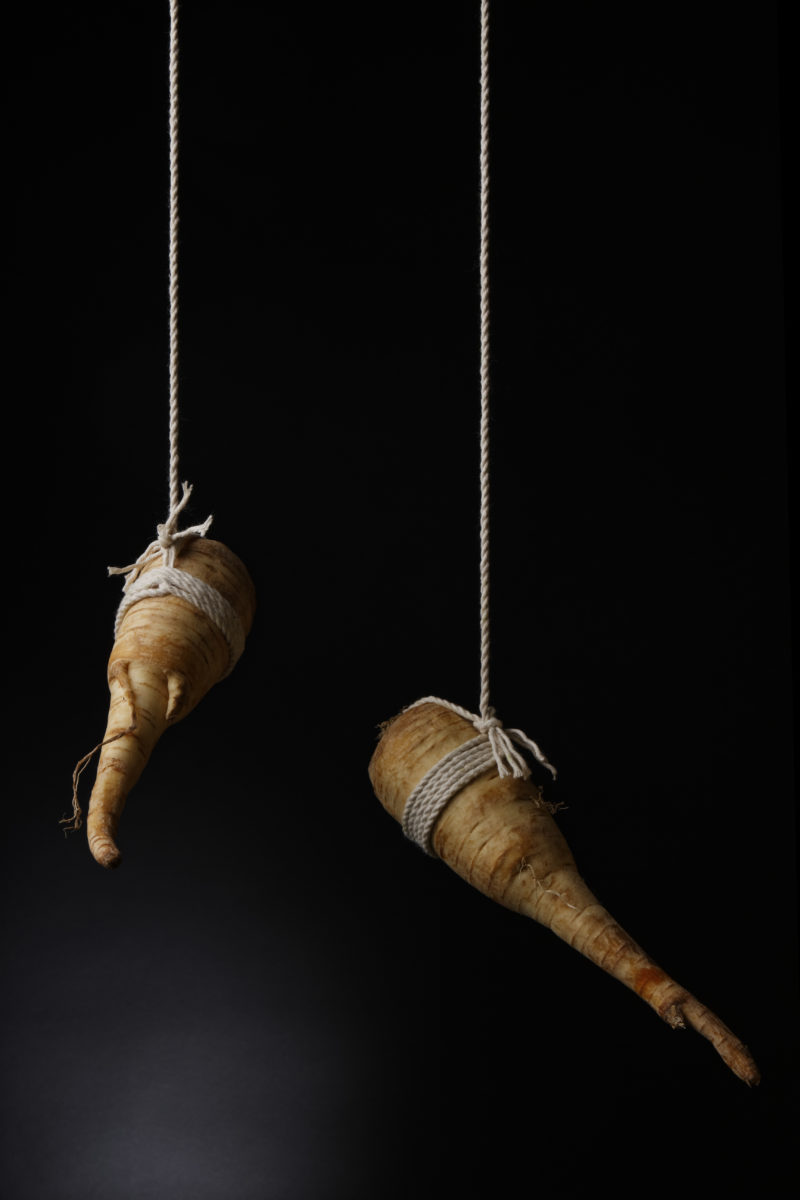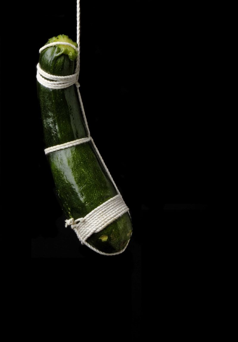 De nombreuses cultures et de nombreux arts à travers l’histoire ont associé la nourriture et la sexualité. J’ai voulu montrer cette association dans des scènes de bondage – pratique sadomasochiste consistant à attacher son partenaire et héritée des techniques de ligotage utilisées au Japon (hojōjutsu).